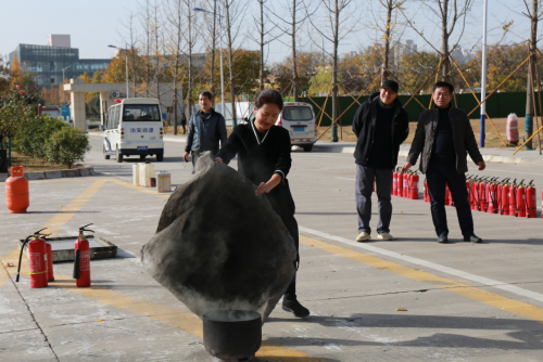 Subsequently, the head of fire safety training guided representatives of teachers and students in rehearsing firefighting by using asbestos blankets for "smothering method", carbon dioxide fire extinguishers for gas fire, and dry powder fire extinguishers for liquid fire. Through hands-on exercises, participants learned how to correctly use fire-fighting equipment, handle emergency situations, and extinguish fires.