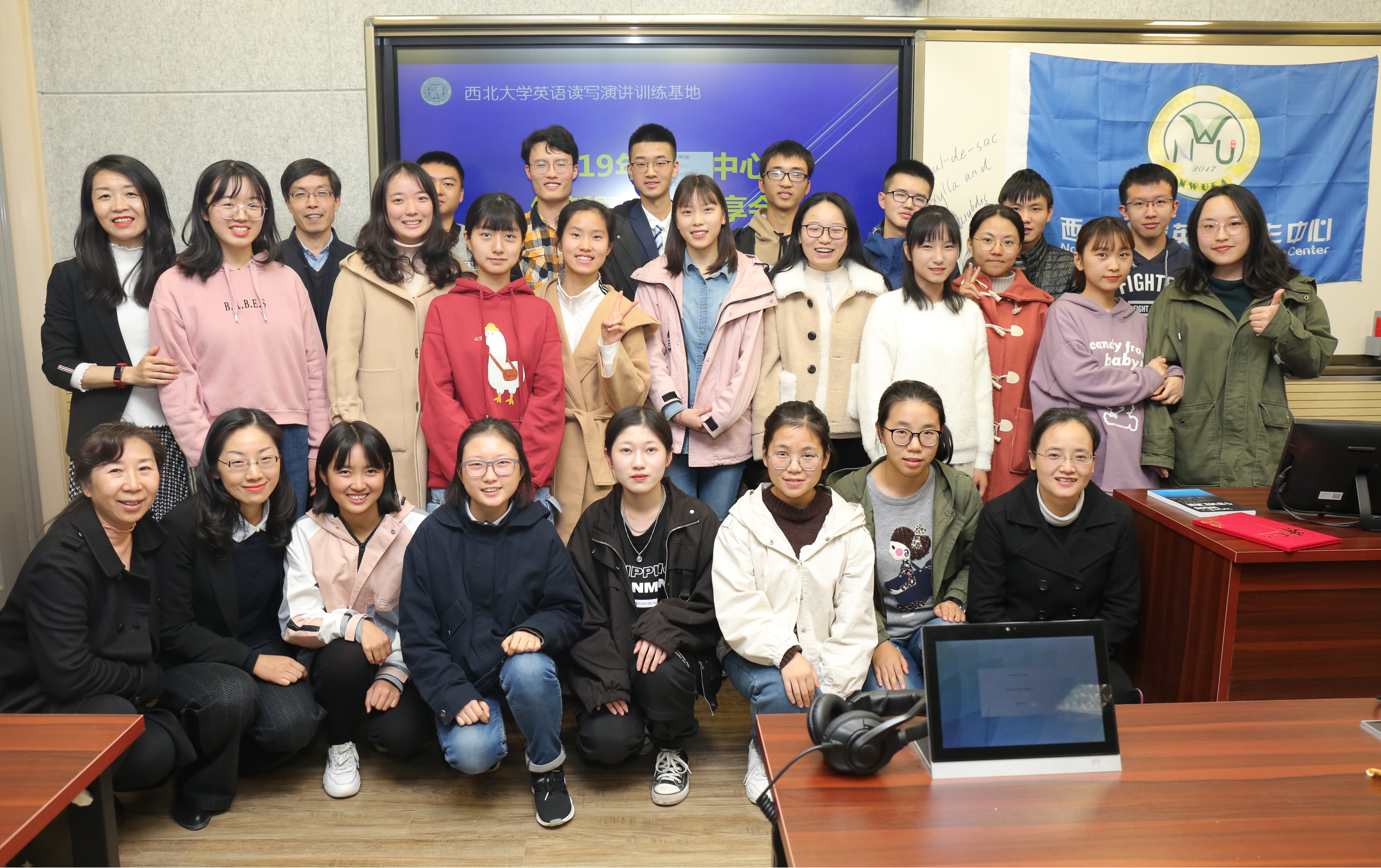 2019年11月13日下午,在我校长安校区外语学院录播室成功举行了西北大学英语读写演讲训练基地写作中心2019纳新暨经验分享会活动。写作中心指导团队的5位教师和来自全校30余名学生共同参与了此次活动。