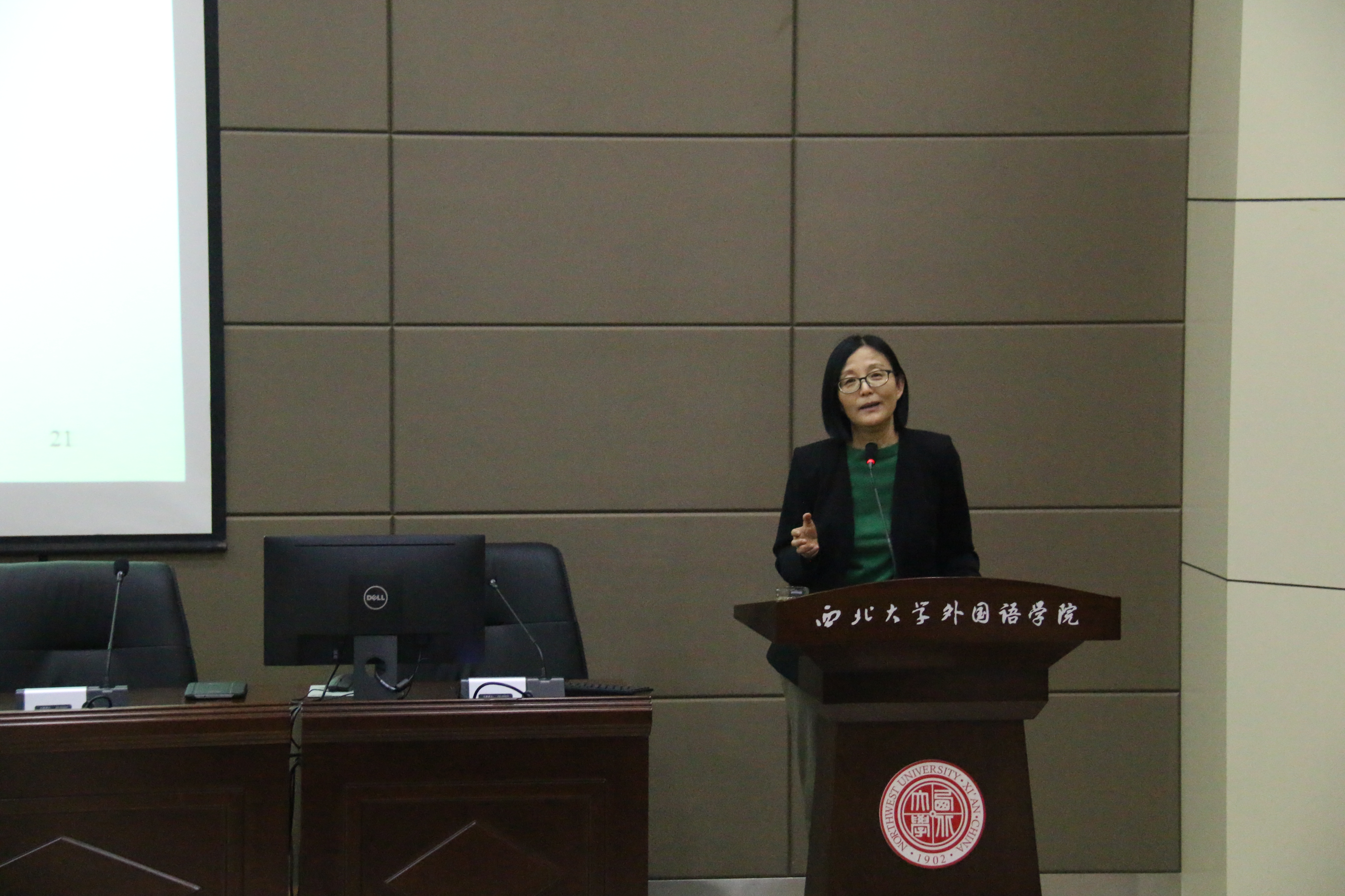 Crain)女士和资深翻译家安危先生应外国语学院邀请,在外语第二课堂为我校师生作了海伦•斯诺(Helen