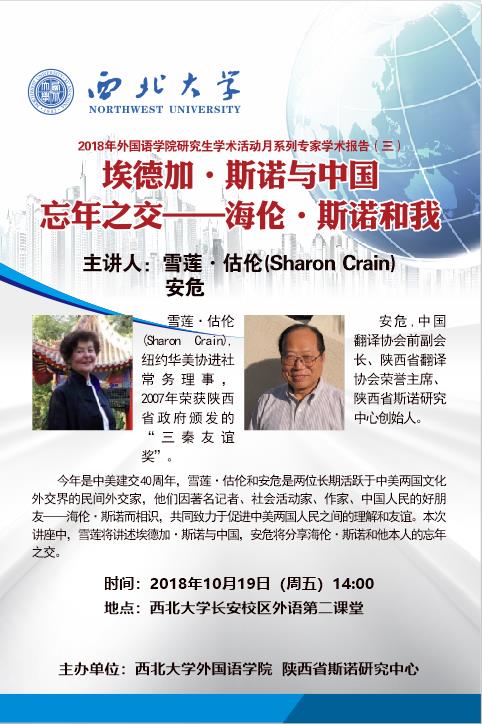 学院定于2018年10月19日(周)下午14:00召开《埃德加·斯诺与中国忘年之交——海伦·斯诺和我》学术报告,请全院教职工准时参加。